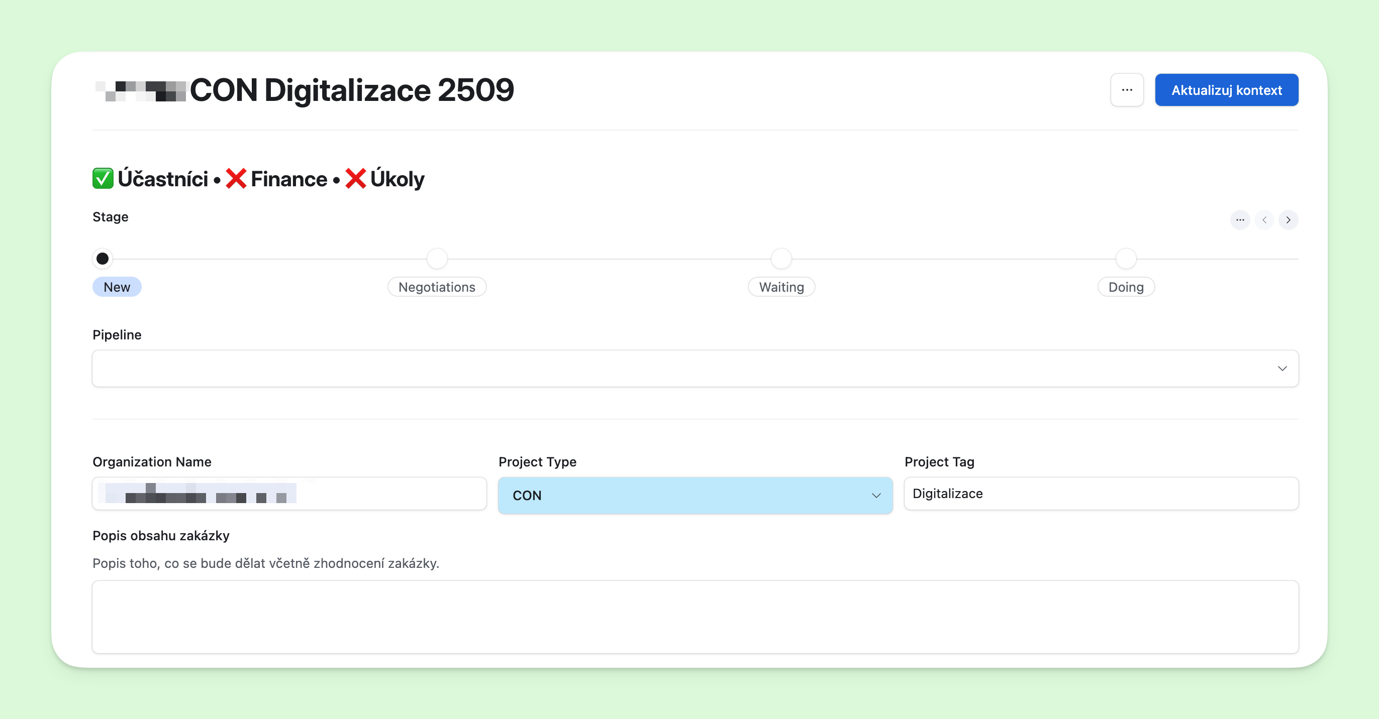 Na stránce Record Detail lze pole Single select zobrazit jako Stepper (sekvenční průchod krok-za-krokem – schvalování, výroba) nebo List (svislé rádio volby – priority, kategorie), známe z formulářů.